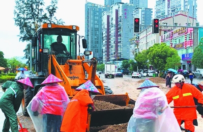 5月31日深夜开始,电影天堂 城管部门、环卫公司组织人员在积水路段开展作业,清理排水口周围的垃圾、落叶、淤泥,安排高压洗扫车、高压洒水车等车辆清理路面。在大型清扫车无法进入的路段,城管队员和环卫工人手拿铁锹清除淤泥。截至6月1日16时,已清理出内涝点20余处,清走淤泥20余车。